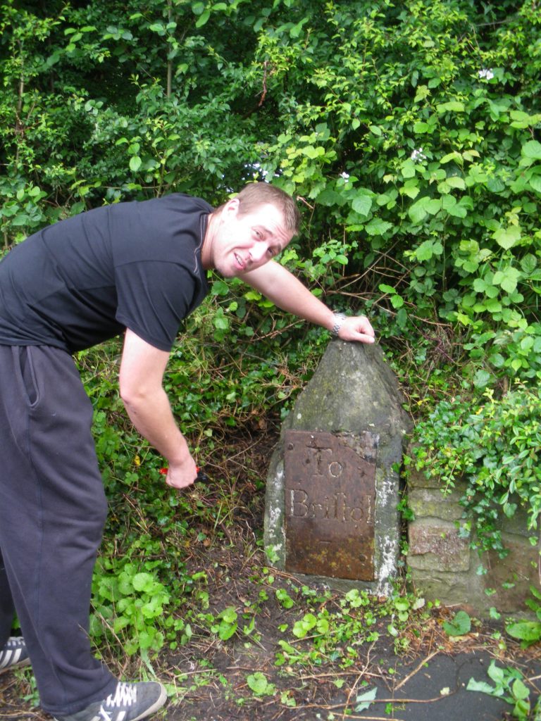 As long as it is safe to work on the milestone, road grime can be removed with a bucket of clean (warm) water, Fairy Liquid or similar and a scrubbing brush. Carry the water in a screw top container of five or ten litres capacity.