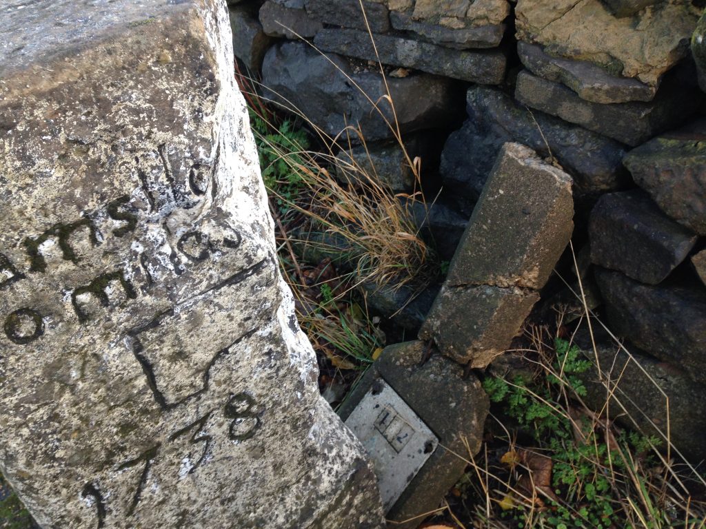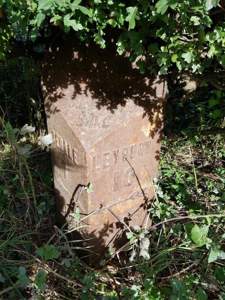 You may want to consider preventing the weeds encroaching again, by using a weed-proof membrane from your local garden centre spread on the ground close to the milestone, held in place with gravel, perhaps. If you want to treat the surrounding area for weed control, 'Foamstream' is more environmentally acceptable than glyphosate (eg Roundup)