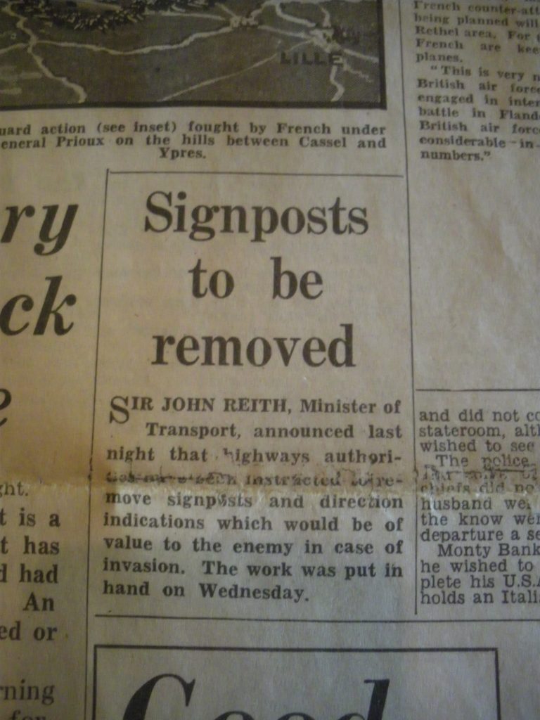It is not recommended that an eroded stone inscription (or one removed in wartime to baffle the Germans) be re-carved by an amateur. It may be regarded as part of the milestone’s history too.