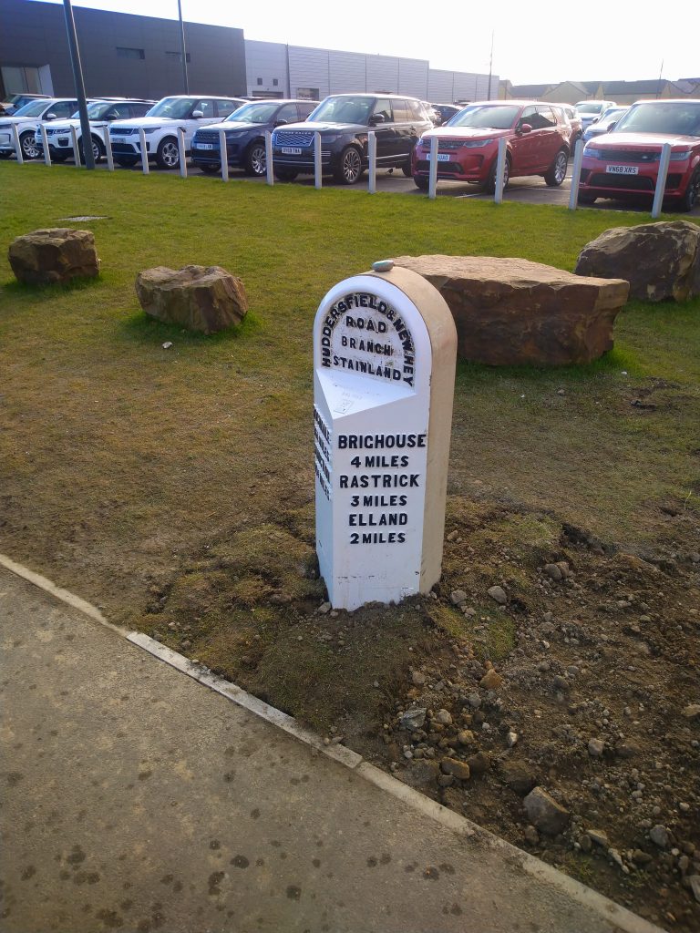 One such was opposite the Wappy Springs Inn, at Outlane, near Huddersfield. (Fig 1) Passing the site in late 2018, Jan Scrine noticed that the milepost and the wall against which it had stood were gone – replaced by the entrance to a new industrial development. Enquiries were made to Kirklees Council, helpfully corroborated by Stan Driver, the former Senior Conservation Officer at the Council, who dug out the site’s planning applications. These indicated the presence of the milepost. Other Society members had mentioned it to the contractors in passing, but apparently the milepost had vanished.