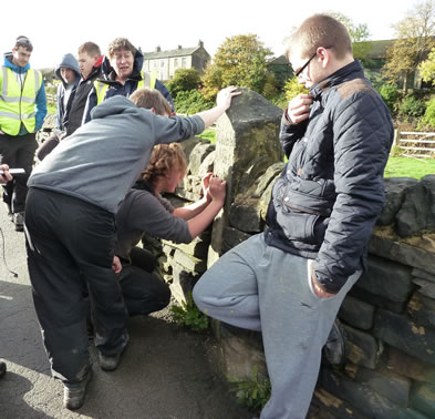 A set of stone-carving tools will be left with Kirklees College; the students have already made their mark by the entrance to Brunel House. They were asked to carve a WW1 memorial stone for Stainland which they accomplished under Dave Bradbury’s guidance. At Oakwell Hall, the local Dry Stone Walling Association rebuilt a wall in a public demonstration, as a result of links established by the project.
