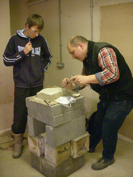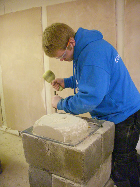Marshalls donated stone from their Howley Park Quarry and Kirklees College offered its facilities for stone carving workshops to be run by local sculptors Melanie Wilks and Dave Bradbury.