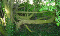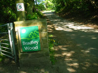 Return to the woodland path and continue along the brook, carefully because it can be slippery under foot, over the stepping-stones and bridge then up the bank to 7 Bradley Gate. This was the boundary between Bradley Manor and the Manor of Huddersfield. Turn left up Old Lane, which dates from the 16th Century. This was the main packhorse route between Huddersfield and Bradford until the Bradford Road was completed in 1840. As you walk up Old Lane, note the ancient 8 “layering” in the hedgerow on the right and the variety of trees in the woodlands.