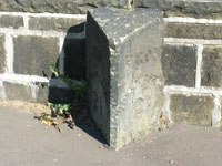 Continue along the side of the dual carriageway; at the top of the hill you will find a small triangular stone 14 ‘To & From’ milepost, saying “To Huddersfield 2.5 miles” on one side and “From Huddersfield 2.5 miles” on the other. These are Victorian cab fare stages, at half-mile intervals on all the radial routes within the town boundary. 15 Continue to the roundabout by Villa Farm, Bradley Bar. The toll house was located on the plot of woodland on the right hand side. Cross Bradley Road at the refuge and walk a few yards left along the 1759 Dewsbury to Elland turnpike; you will see another 16 Brayshaw & Booth milestone. This one is the right height above the ground; the road surface has risen to engulf the previous milestones.