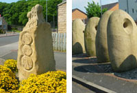 If you detour a short distance up Hopkinsons Road on your right, you will see some new waymarkers 2 & 3 , commissioned in 2004, when the estate was rebuilt.