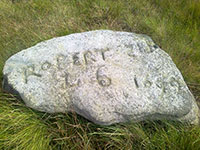 Over the stile, turn right and follow the wall for half a mile on a thin , intermittent and often boggy path to the Te Deum Stone. About half way and 100 yards after a wall is crossed , note a boulder used as a boundary stone. 9 At the Te Deum Stone 10 note the inscription – TE DEUM LAUDAMUS which is Latin for“We Praise Thee O Lord”. The stone was supposedly used to rest coffins on when the dead of Mankinholes and Lumbutts were buried at Cragg Vale before those villages had a burial ground. Turn right through the gate and notice the initials “L” (Langfield) and “S” (Sowerby) carved on the gateposts 11. The locals clearly enjoyed using existing stones to use as boundary stones. The next 300 yards feature 4 stone posts, used to guide travellers across the top of the moor and also a causeway. 12