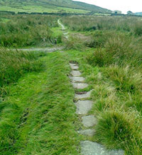 Grade: The route is medium on tracks, some of which can be rough underfoot and steep, paths and roads with a short section on high moorland which can be wet underfoot. Stout foot ware and waterproof clothing is needed. Not suitable for mobility-impaired or young children. Not recommended in poor visibility.