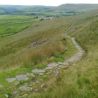 The route starts in Lumbutts, and soon passes the first milestone and follows the London Road to the east, a contouring track that used to be the main road to Halifax before the turnpikes in the valley floor. Stoodley Pike is then visited followed by the Te Deum Stone and the magnificent Withens packhorse causey that returns us to Lumbutts. For the energetic, a 2-mile optional diversion takes us to another superb pre-turnpike milestone alongside another excellent stretch of packhorse causeway before retracing our steps to Lumbutts.