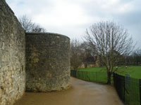 Stroll along the riverbank to the end of the railings, watching ducks, swans and grey geese bobbing and, in the summer, much boating activity. Turn left and walk up a wide tree-lined gravel track towards Christchurch as far as Christchurch archway. Turn right and walk a short distance (80 yds) along the Broadwalk. At the end of the stone wall, turn left towards Merton College Tower, 31 between Christchurch gardens on the left and playing fields on the right. Just before the next kissing gate turn right on to Dead Man’s Walk, alongside the most extensive remaining stretch of the old city wall. Dead man’s walk is so named because it was the route taken by funeral processions from the Synagogue to the Jewish burial ground. This was on the site of the Botanical Gardens, see section 7. Continue along Inspector Morse’s favourite route, 32noting the plaque set in the wall 33 to commemorate Aeronaut James Sadler, to the next junction and turn left along the path that leads through a kissing gate to Rose Lane. Walk down Rose Lane, passing the back of Merton College, to the junction with the High Street **. Cross the High Street, using the refuge to your right, to Magdalen College porter’s lodge 34 and continue forward.