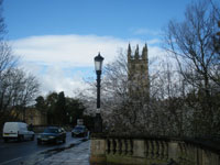 Continue to the end of the High Street (Botanical Gardens on the right) crossing the Magdalen Bridge 36. The roundabout at the Plain, with its clocktower and three main roads leading off it, is the site of the former St Clements tollhouse. This served two turnpike roads. The right-hand road, the Iffley Road, turnpiked in 1736, is still an alternative route to London via Henley-on-Thames. The centre road, the Cowley Road was never turnpiked. The left-hand road, St Clements, is the route of the Great Road from London to Worcester, turnpiked in 1719. Follow the St Clements road. The second turning on the left (before the Angel & Greyhound pub) leads into the car park and marks the end of the walk.