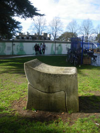 Walk up Cuckoo Lane. After about 200 yards, look to your left for the boundary stone, 6 (SP 5307 0668), behind iron railings in bushes and next to a tree. The stone is rather worn and hard to read in the shade but you should be able to see the Ox and the wavy lines denoting the ‘ford’ and possibly the legend “C.J.S/ MAYOR”. This stone marks the new eastern boundary of Oxford in 1835. The initials stand for Charles James Sadler (Mayor in 1836/7) This design was regularly used for the city boundary stones. After about another 100 yards turn right up steps into Headington Hill Park. Once the “most grandiose council house in England”, rented for a pittance by Robert Maxwell, it is now part of Oxford Brookes University.